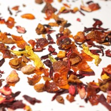 Mélange de fleurs d’hibiscus, de morceaux de pommes, d’écorce de cynorrhodon et d’orange, de fleurs d’hélianthe.Arômes d’abricot et de pêche.